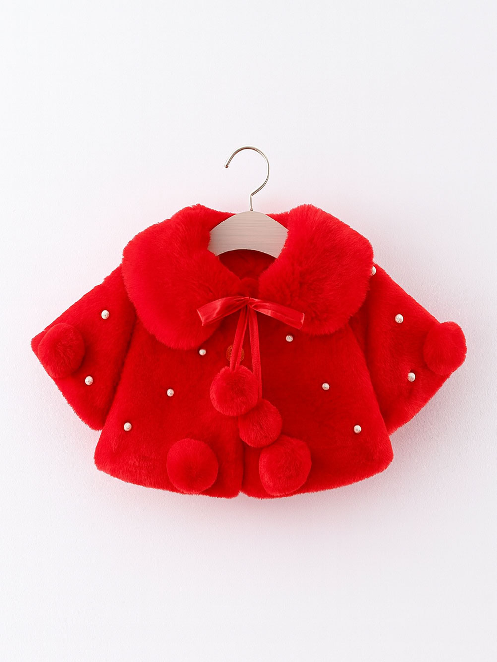 - Jachetă pufoasă cu perle și ciucuri din blană artificială moale și pufoasă, cu guler rasucit și maneci trei sferturi. Inchidere cu nasturi asortati și cordon cu ciucuri la rascroiala gatului. Cu căptușeală matlasată. Din bumbac 60% și poliester 40%.
