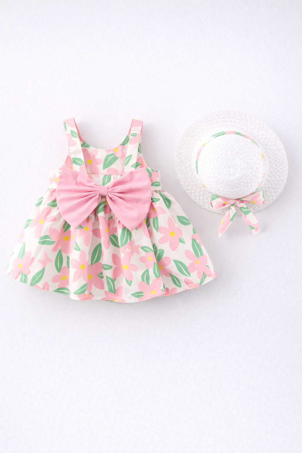 - Rochita casual de vara cu palarie pentru fetite. Vaporoasa, cu croiala lejera si decolteu rotund. Cu imprimeu floral integral si palarie asortata. Din bumbac 100%.