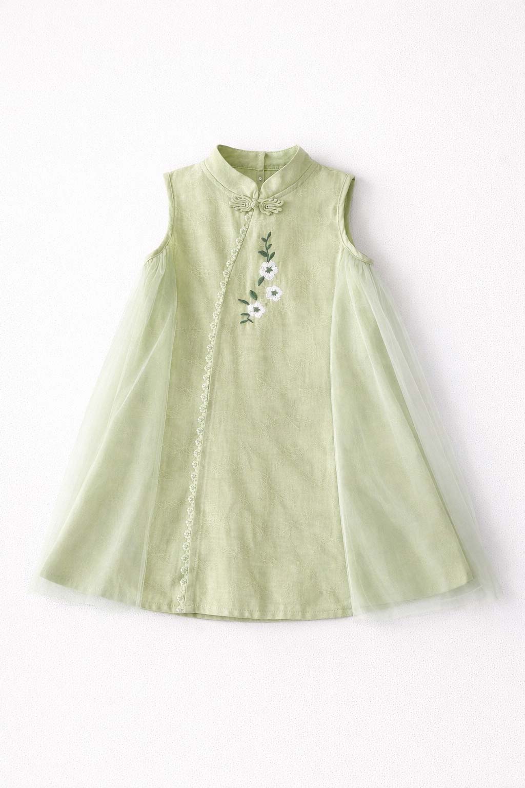 Rochie verde evazata din bumbac cu tul Ivy Green