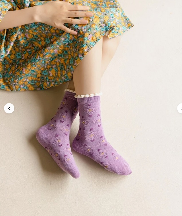 - Sosete tricotate fin, din amestec de bumbac moale. Cu bordura usor elastica in partea de sus pentru fixare si imprimeu floral.