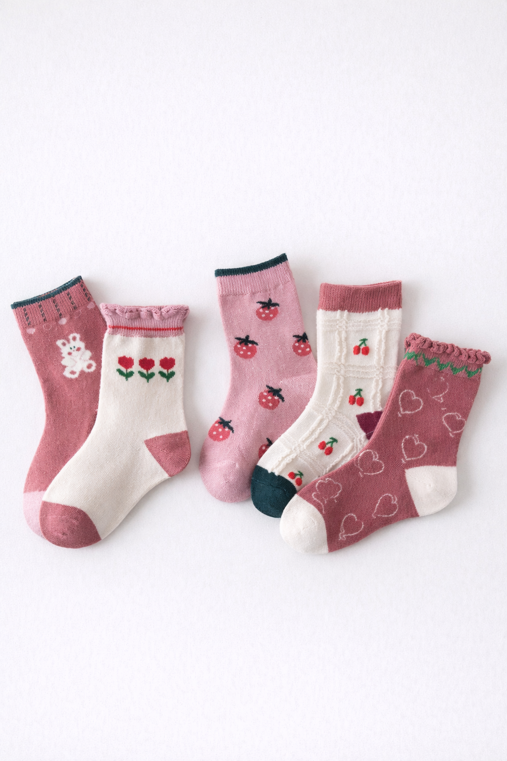 set de 5 perechi de sosete colorate roz pentru fetite fetesosete pink