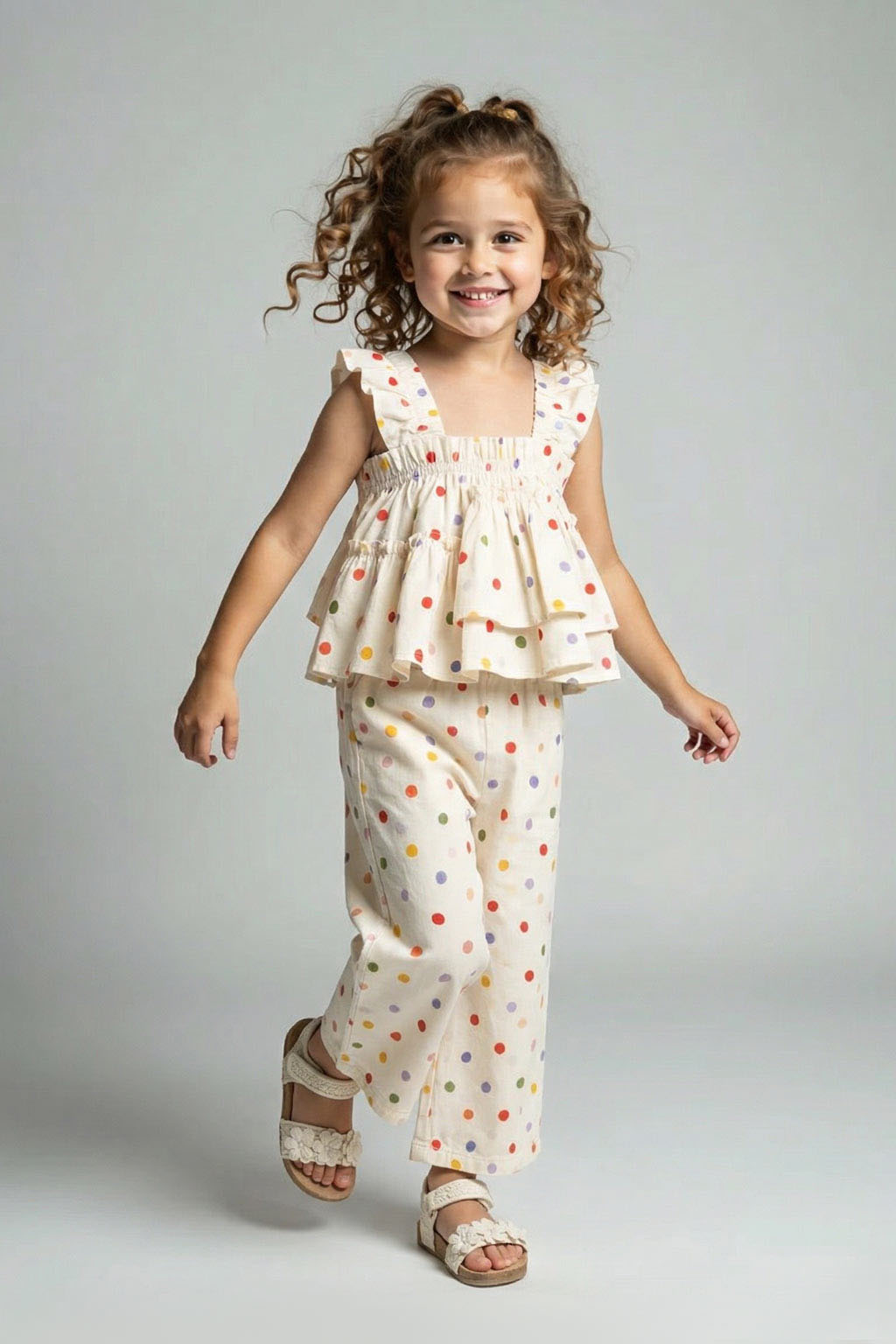 set de vara cu maieu cu volane si pantaloni lungi dots